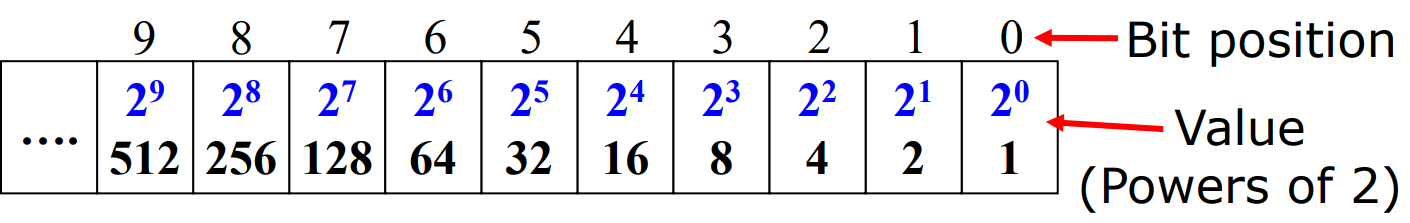 - 1, 2, 4, or 8 bytes = 8, 16, 32, 64 bits