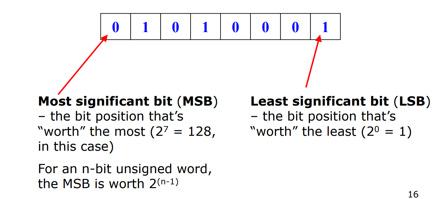 - The most significant bit is the position on the left that is ‘worth’ (in value) the most.