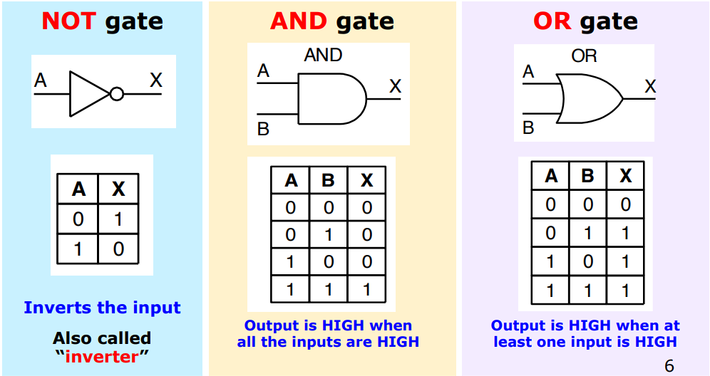 Logic Gates are the building blocks of computers, where each gate has one or more inputs, and always have one output. These Logic Gates perform logic operations (or functions) that consist of 7 basic types: