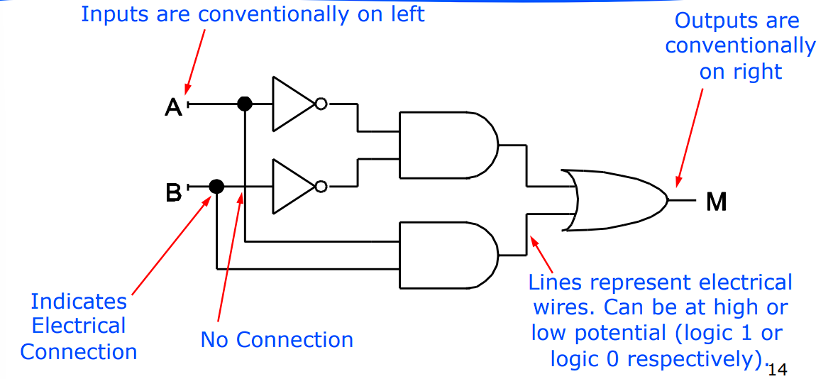 Logic functions can be expressed as expressions involving variables (such as ), and functions (such as ).