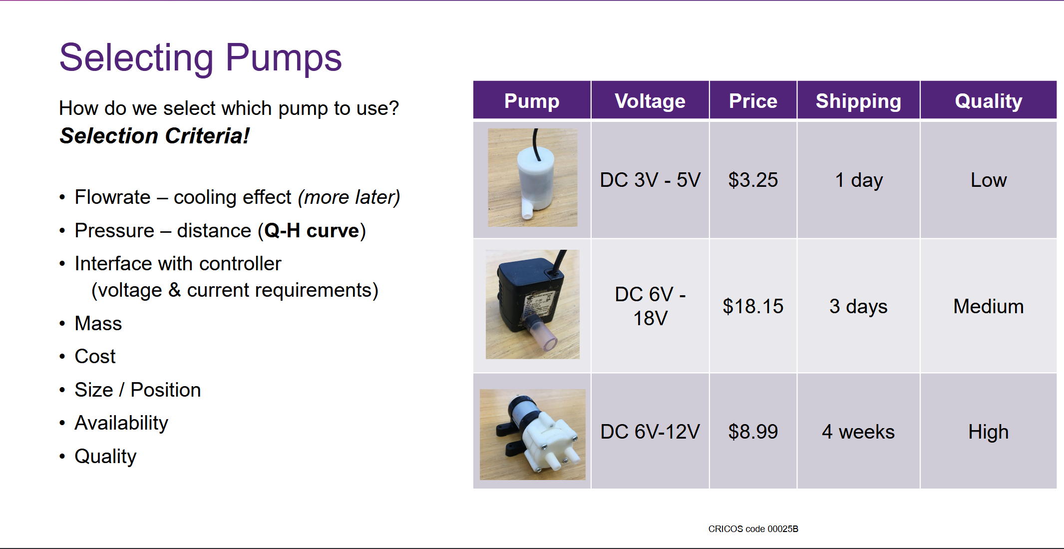 Know the technical specifications of your pumps (components)