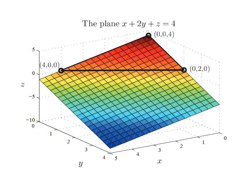 with fixed real numbers, If the plane is not vertical, i.e., , this equation can be rearranged so that is expressed in terms of and :