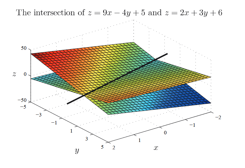 The following picture shows the intersection of the planes and . Note that the intersection is a line.